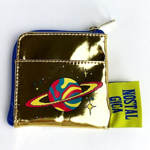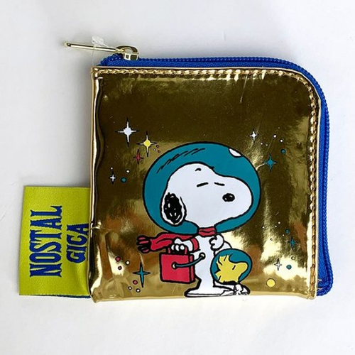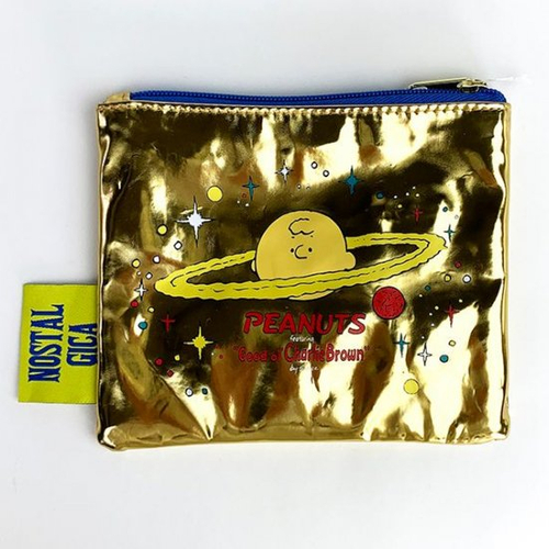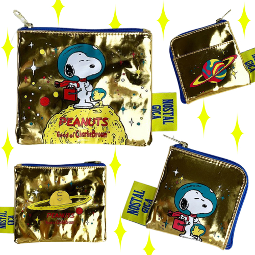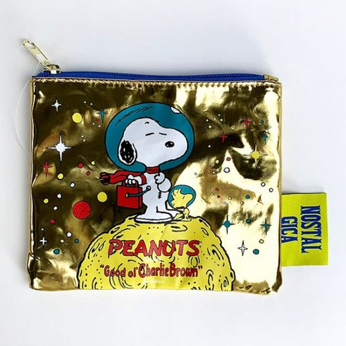 キラキラなゴールドカラーの、フラットポーチです。スペーススタイルのスヌーピー&ウッドストックが宇宙旅行中?でしょうか。