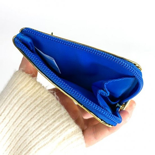 ファスナーを開くと、片側にマチがあるのでコインが取り出しやすいんです。片手サイズなので、持ち歩きに便利ですね。