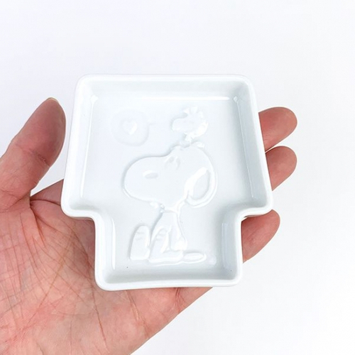 プチプラ!お醤油を入れると顔が浮かび上がる!つるりとしたスヌーピーのディッププレートがプレゼントにうってつけ。