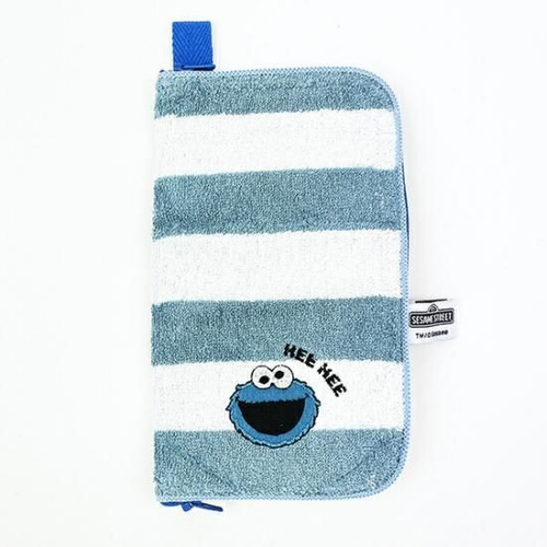 クッキーモンスターのファニーフェイスの刺繍がオシャレなタオル地のポーチです。