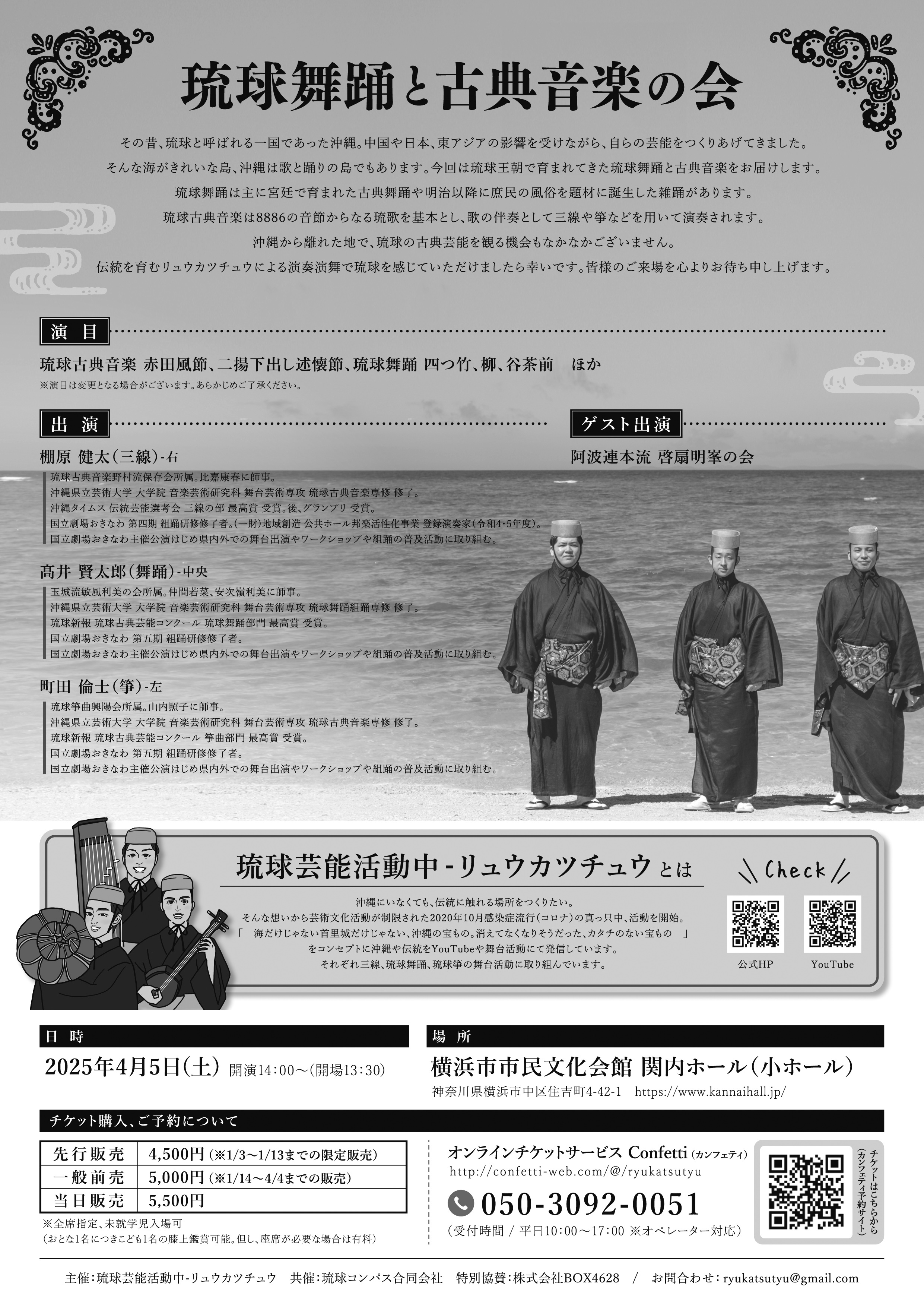 琉球芸能活動中-リュウカツチュウ『琉球舞踊と古典音楽の会』が2025年4月5日 (土)に関内ホール 小ホール(神奈川県横浜市中区住吉町4丁目42-1)にて上演されます。