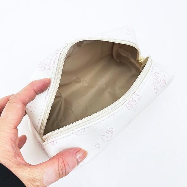続いては、白地にピンクサクラカラーの線画が上品かわいいMサイズのポーチです。