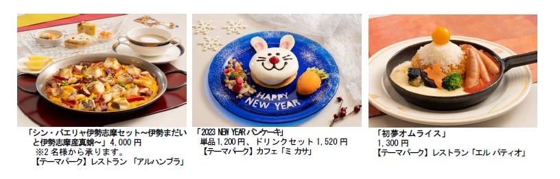新年をお祝いする年末年始限定の特別メニューを販売します。スペイン料理のパエリャと日本の縁起ものである鯛を組み合わせ、華やかな金箔をあしらった “めで鯛”メニューが登場。さらに、2023年の干支である“うさぎ”をモチーフにしたパンケーキや、初夢に見ると縁起がいいとされる一富士二鷹三茄子を表現したオムライスなど、お正月の特別感を味わえるメニューをお楽しみいただけます。