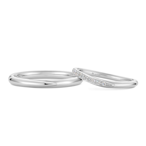 このほどの新作は、いずれもシンプルで華奢な指輪に10ピースのメレダイヤモンドが連なるエレガントなデザイン(女性用)。婚約指輪「Pace(パーチェ)」は、イタリア語でやすらぎ・平和という意味、結婚指輪「Hug you(ハグ ユー)」は、ゆるやかなカーブで大切な人を包み込む“ハグ”をイメージした、愛情あふれるデザインです。
