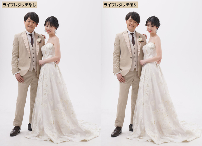 一生に一度の晴れ姿を、自分にとっての最高の状態に仕上げることができるのが、ライブレタッチの写りの特徴。自分だけが知っている一番好きな私へ、自由にセルフレタッチを楽しめます。
