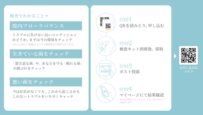 この検査キットは2026年春に製品として販売を予定しております。ご自身の腟内の状態に少しでも興味がある方は、この機会に是非お申込みください。