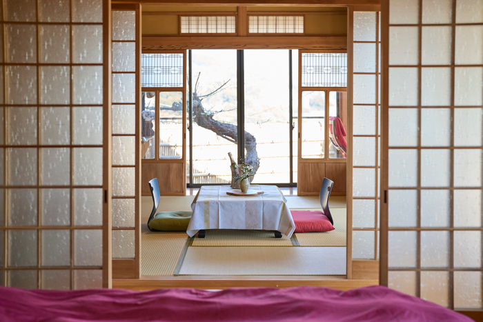 また、熱海の絶景を望む庭では四季折々の風情が楽しめます。春には植え込まれた梅の木に鶯が訪れることもあり、まさに「梅に鶯」の情景が広がります。定員は少人数向きの4名となり、夫婦やカップルなどでプライベートな時間をお楽しみいただけます。