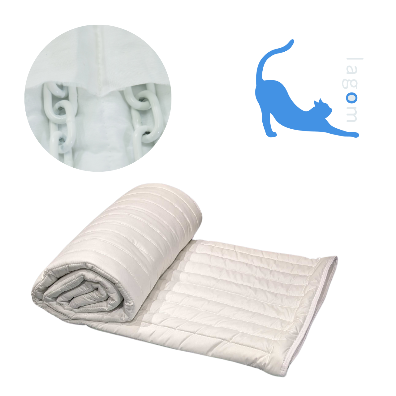 チェーンブランケットは精神・発達障害があって多動・衝動性と睡眠で悩んでいる人のためにスウェーデンで開発されました。内蔵されたチェーンが体に沿ってボディイメージを手助けすることで安心感がある独特の使用感が生まれています。洗濯機で丸洗いも可能なためお手入れも簡単です。チェーンブランケットが登場する前から欧米を中心として自閉スペクトラム症があって落ち着くことが難しい方のために重いブランケット(ウェイトブランケット)が使われてきました。しかし、重みが偏ったり、洗濯機で洗えなかったり課題がありました。チェーンブランケットはそれらの課題をクリアしています。