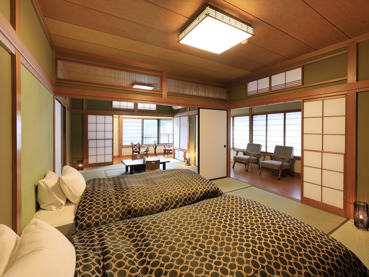 当館の客室はあえてテレビは設置しておらず、心を満たすお時間をお過ごしいただける空間となっていますので、「宇治抹茶」「静岡抹茶」2種類のお抹茶体験セットと和菓子で和の余白を愉しみながら、ぜひ旅の想い出をつくられてみてはいかがでしょうか。