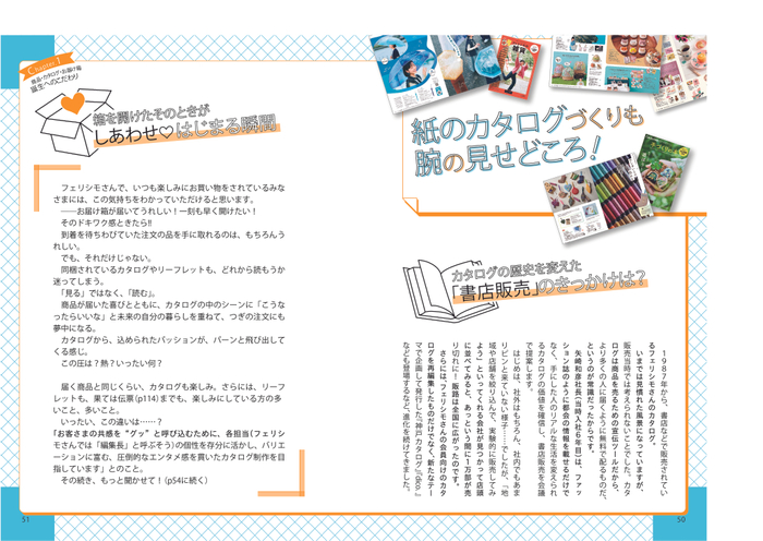 商品はもちろん、毎月届くカタログやお届け箱、伝票までも、大変楽しみにしている、ファンの多いフェリシモさん。企業名を“さん”付けするほどに親しみを持ち、「フェリシモさんでないと、イヤ!」と心惹かれるのはなぜ・・・・・・?「商品を買う」「品物が手に入る」だけではない、まいにちを「しあわせで満たしてくれる」フェリシモさんの秘密がわかります💓