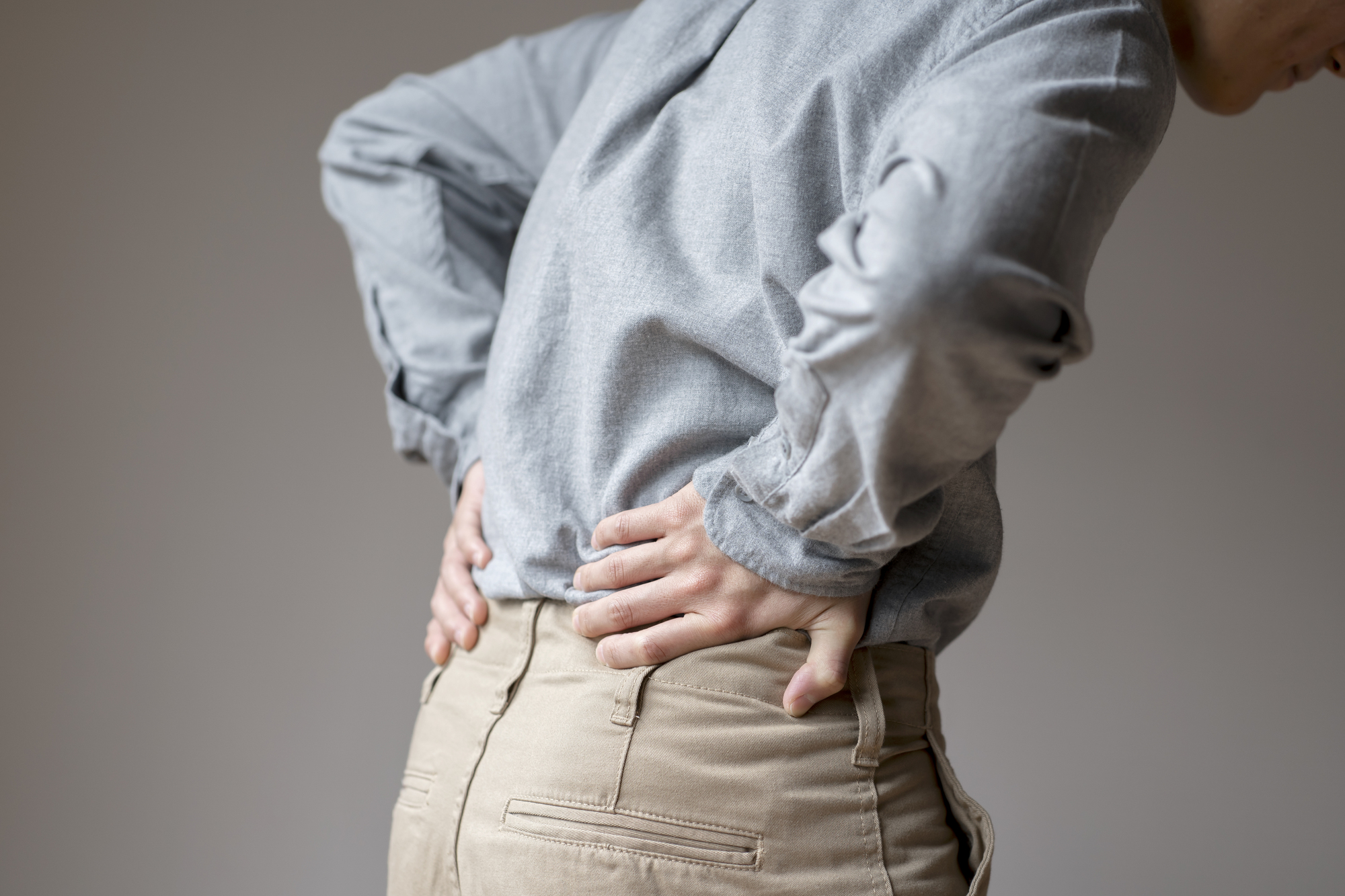 立っているよりも座っているほうが腰が痛い、前かがみで痛みが強まる、足にしびれや痛みが広がるというような症状があらわれます。