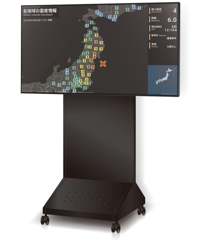 港区の地下駐輪場「品川駅港南口自転車等駐車場」にデジタルサイネージを設置し、駐輪場ご利用者様や現場管理スタッフに緊急速報や港区防災メールなどの災害情報を迅速に伝達することで、地下施設内におけるさらなる安全性向上に取り組みます。また、平時には駐輪場利用案内や鉄道運行情報、自治体からのお知らせ等を掲示するなど、ご利用者様向けのサービス向上にも活用してまいります。