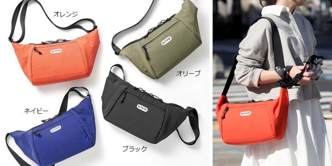 わずか約230gの超軽量設計で、カメラを保護しながら軽快に持ち運べるショルダーバッグ。身体にしっくりとフィットするラウンド型フォルムで、ミラーレス一眼カメラと交換レンズを収納可能。
