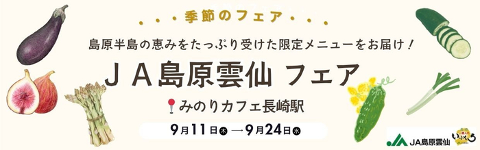 JA全農は、直営飲食店舗「みのりカフェ長崎駅店」で、9月11日(木)~9月24日(水)の間「JA島原雲仙フェア」を開催します。