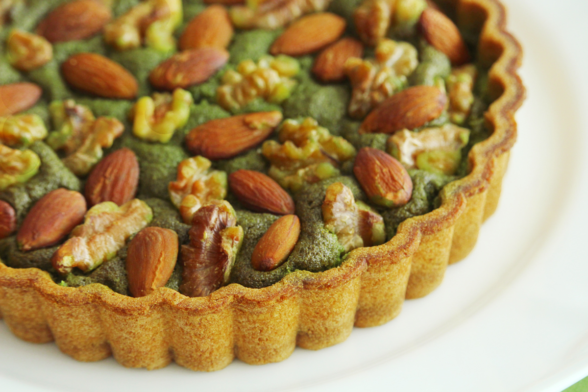 タルトの内側には、抹茶とアーモンドパウダーを贅沢に使用し焼き上げたダマンド生地を敷き詰めました。