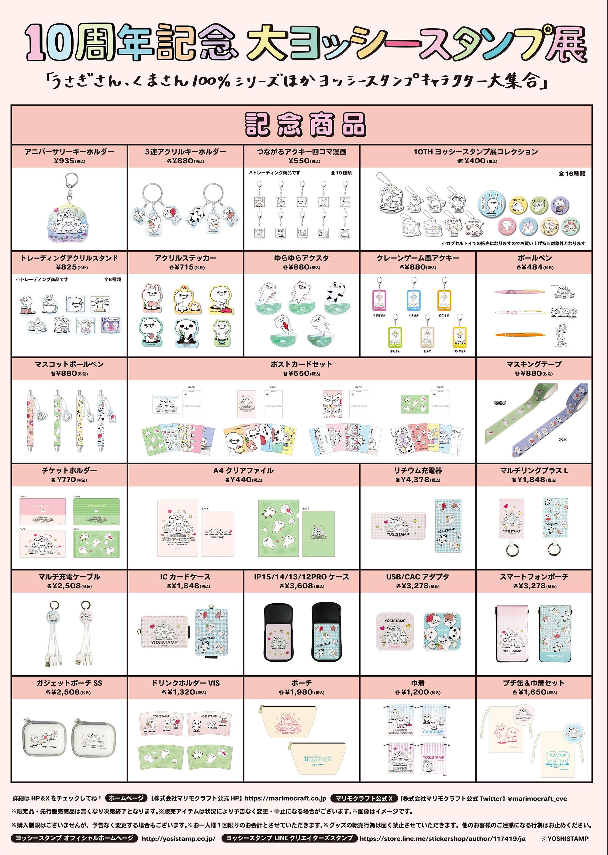 今回の催事では、2015年から販売してきたスタンプの展示、年表、うさぎさん、くまさん、ぬこさま、ぶたさん、わんこ、ひよこさんの立像展示、皆さんからのXへの投稿で選ばれたベストスタンプのスタンディフォトスポット、「ヨッシースタンプをさがせ!」の間違い探しウォールなど過去最大のイベントとなります。