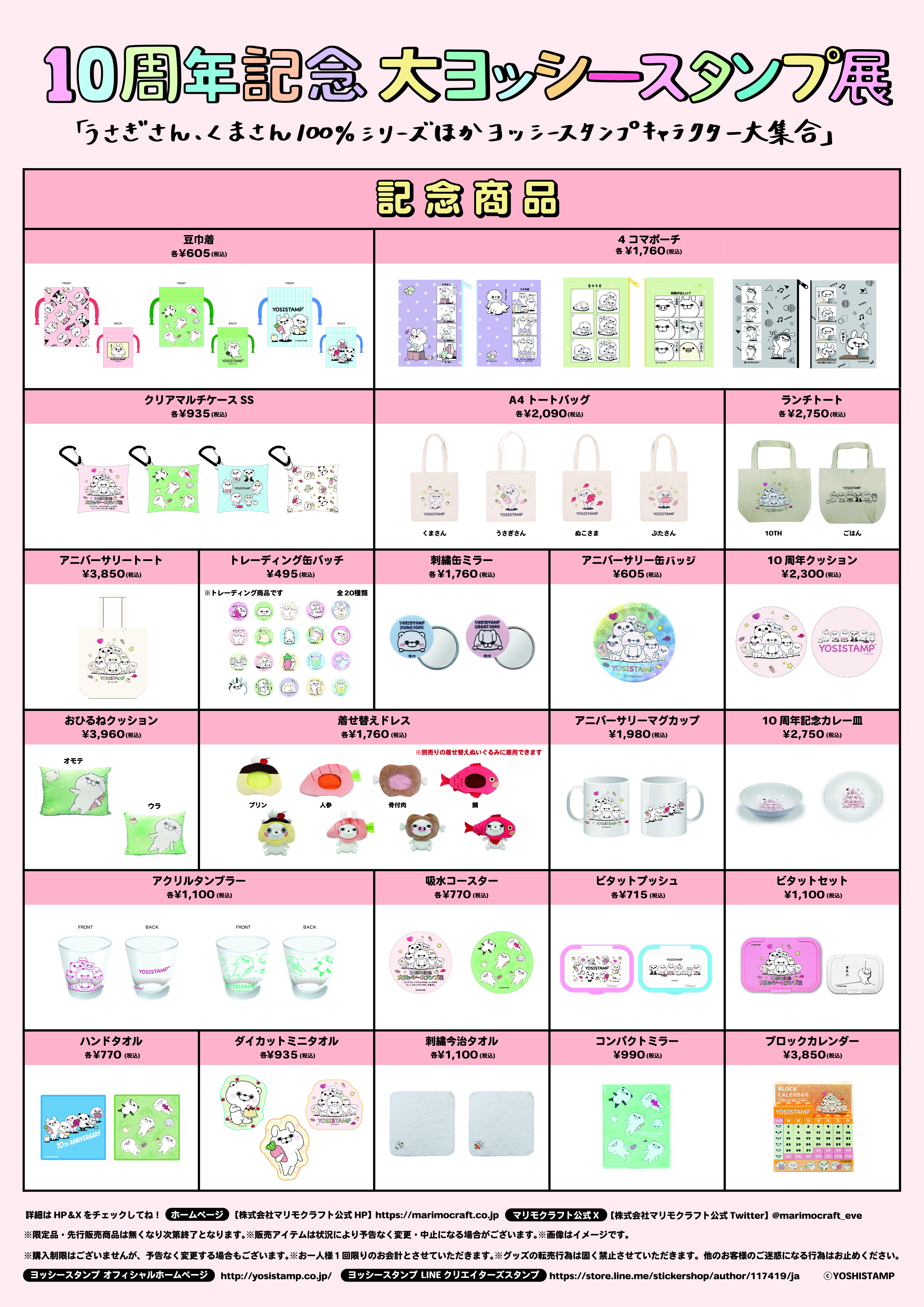 グッズ販売コーナーには今回の展示のためにヨッシースタンプさんが描き下ろしたオリジナルアートのイベント記念グッズや先行販売商品が200点以上登場します。