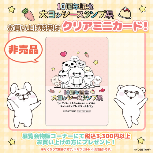 展覧会物販コーナーにて税込み3,300円以上お買い上げの方にはクリアミニカード(非売品)をプレゼント!
