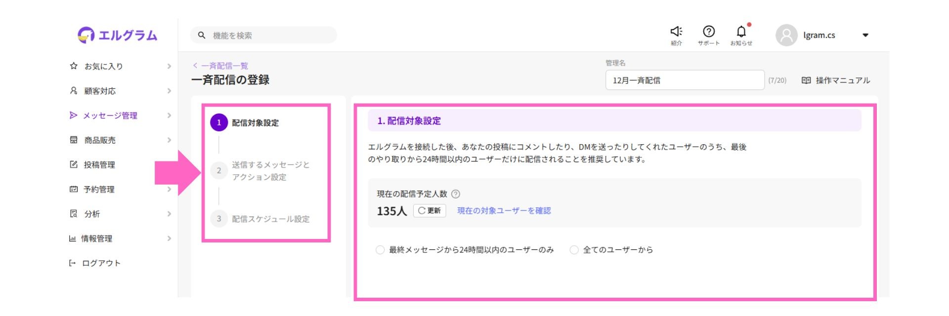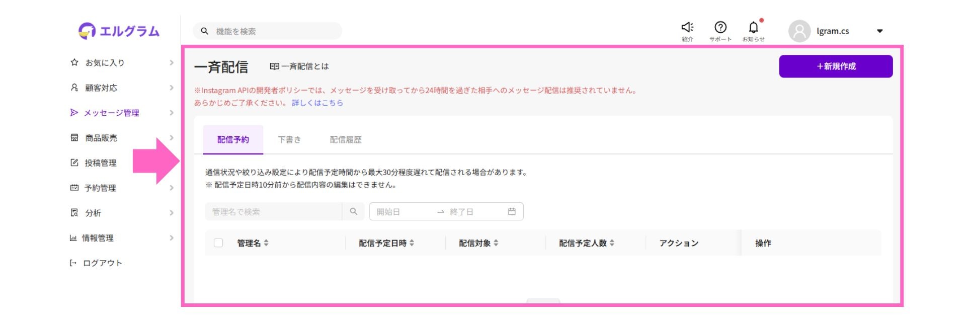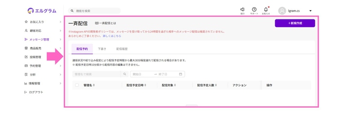 Instagram自動化ツール「エルグラム」、一斉配信の管理画面を更新