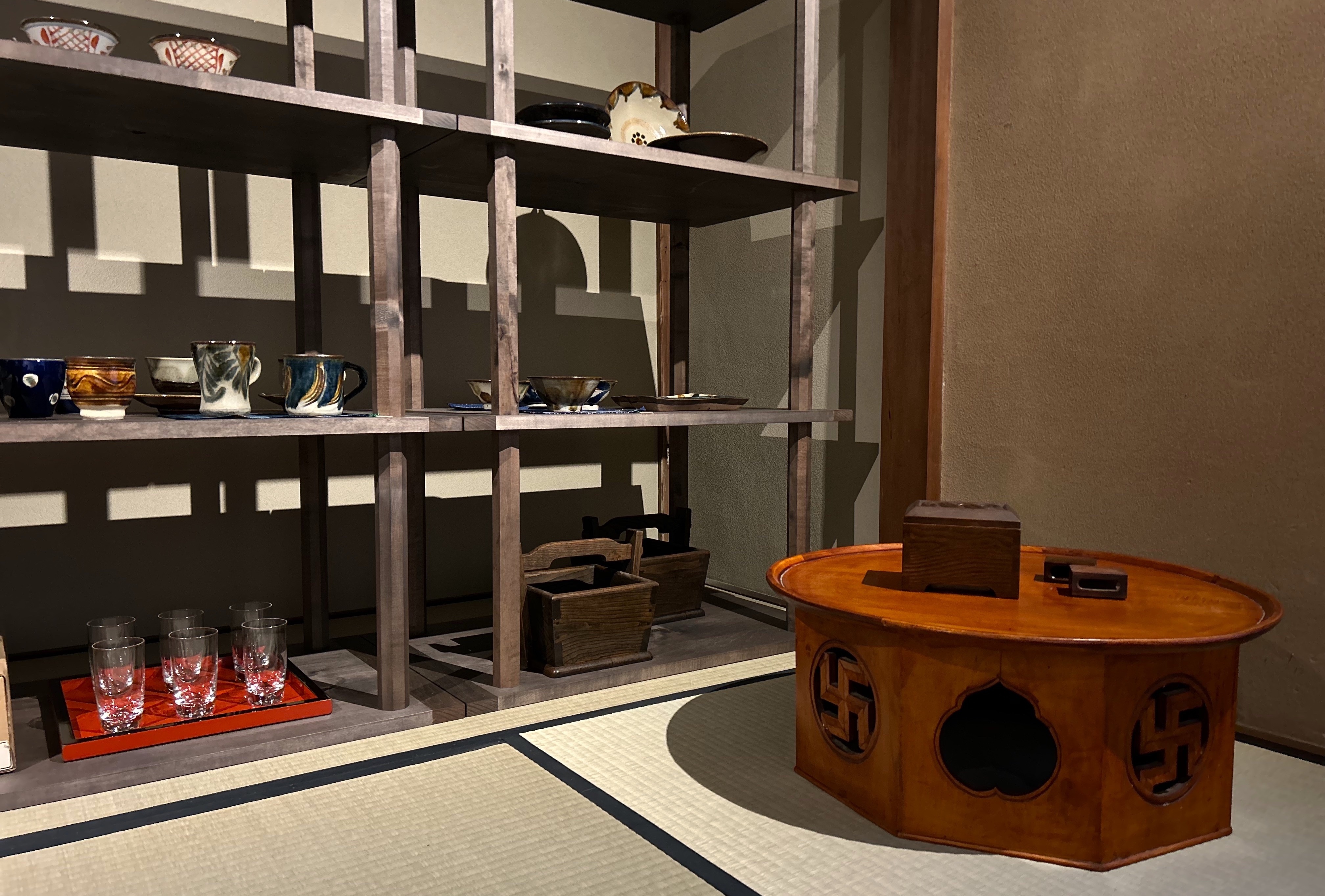 ショップには濱田庄司や芹沢銈介、安川慶一ら民藝巨匠の作品から全国の民藝産地の器や杜人舎セレクトの物産品などを取り揃えます。客室・館内には美術館のように世界各地のさまざまな民藝品が置かれ、その様相はまさに「泊まれる民藝館」。展示品も一部購入可能で、館内全体を暮らしを豊かにするものとの出会いの場としてお楽しみいただけます。