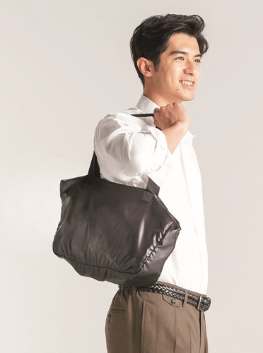 今回発売するジャケットは、背中に取り付けたファスナー付きポケットから袋状になっている中生地を取り出し、その袋地の中にジャケットそのものを収納することでバッグに早変わりします。この商品は高い防シワ性が特徴で、バッグからジャケットに戻した際にもシワが気になりません。また、ジャケットの表地には撥水加工を施しており、着用時には雨水を弾くとともに、バッグ形状ではこの表地がバッグの中生地(裏地)になるため、物を入れたときの水滴も弾くように工夫しました。さらに、自宅で洗濯できるため、ジャケットとしても、バッグとしてもいつでも清潔に使用できます。