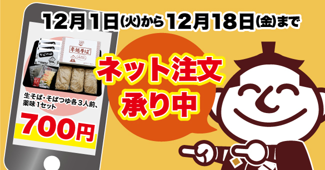 年越そばのオンライン予約は、2020年12月1日(火)~18日(金)まで承ります。