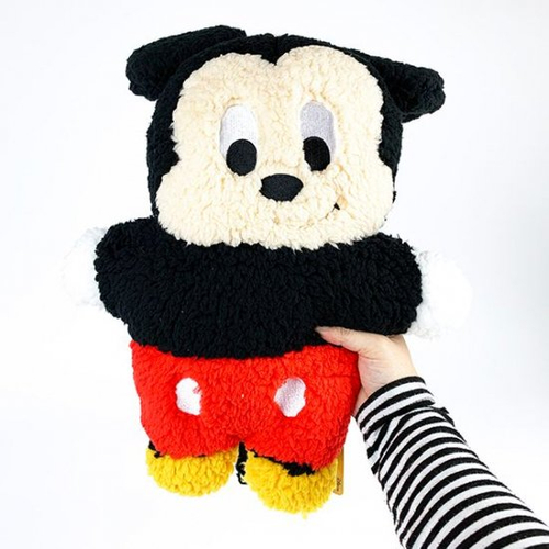 お次はミッキーです。いつもの赤いカラーのパンツスタイル♪もふもふしているので、ソファでくつろいでいる際にもそばに置いておきたくなります。