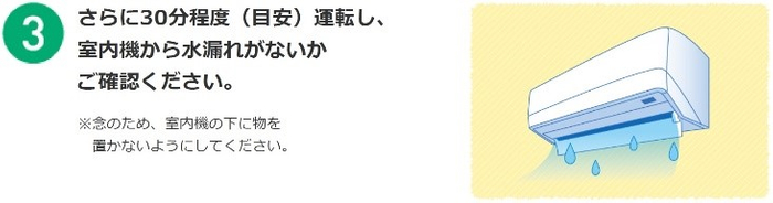 「30分も待っていられない」という場合には、切タイマーを有効活用してください。(注意)万が一の水漏れに備え、エアコンの下には物を置かないようにしましょう。