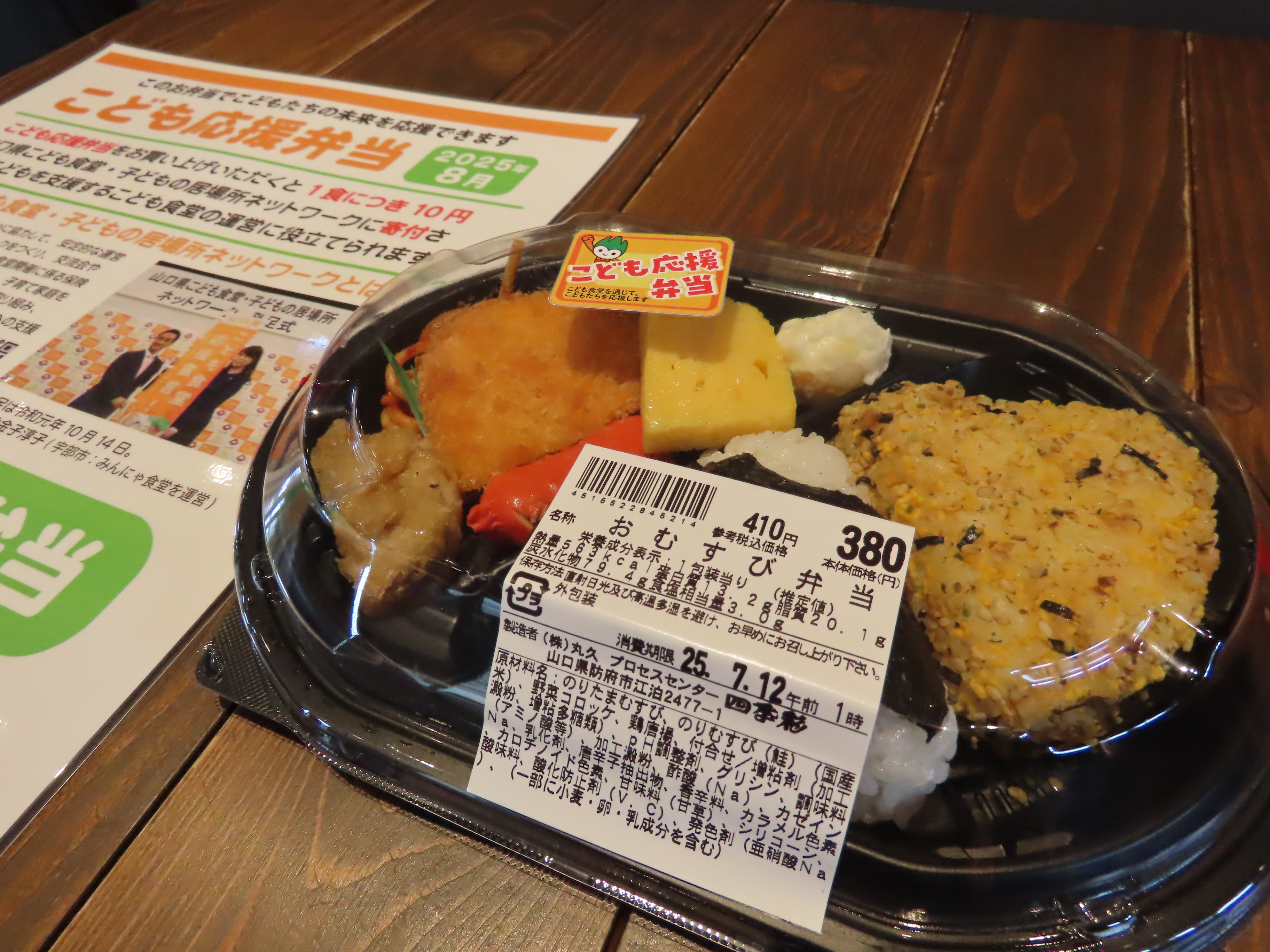 「こども応援弁当」のシールを貼った弁当1個の販売につき、10円を㈱丸久から山口こども食堂・子どもの居場所ネットワークへ寄付し、山口県こども食堂・子どもの居場所ネットワークに参加する県内のこども食堂が行う子どもたちを支援する活動にあてられる。