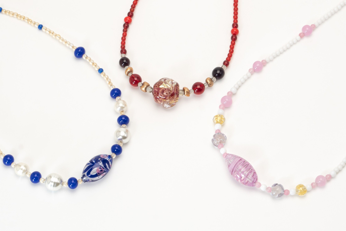 本展監修者小瀧千佐子氏が主宰するセレクトショップ「chisa」によるヴェネチアンガラスのビーズでオリジナルのネックレスを制作するワークショップ。