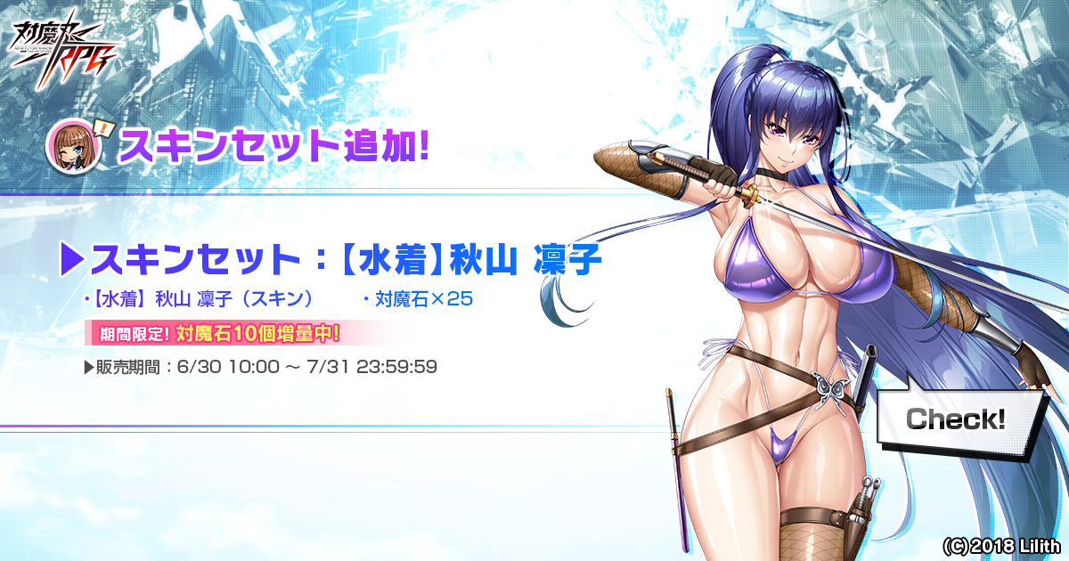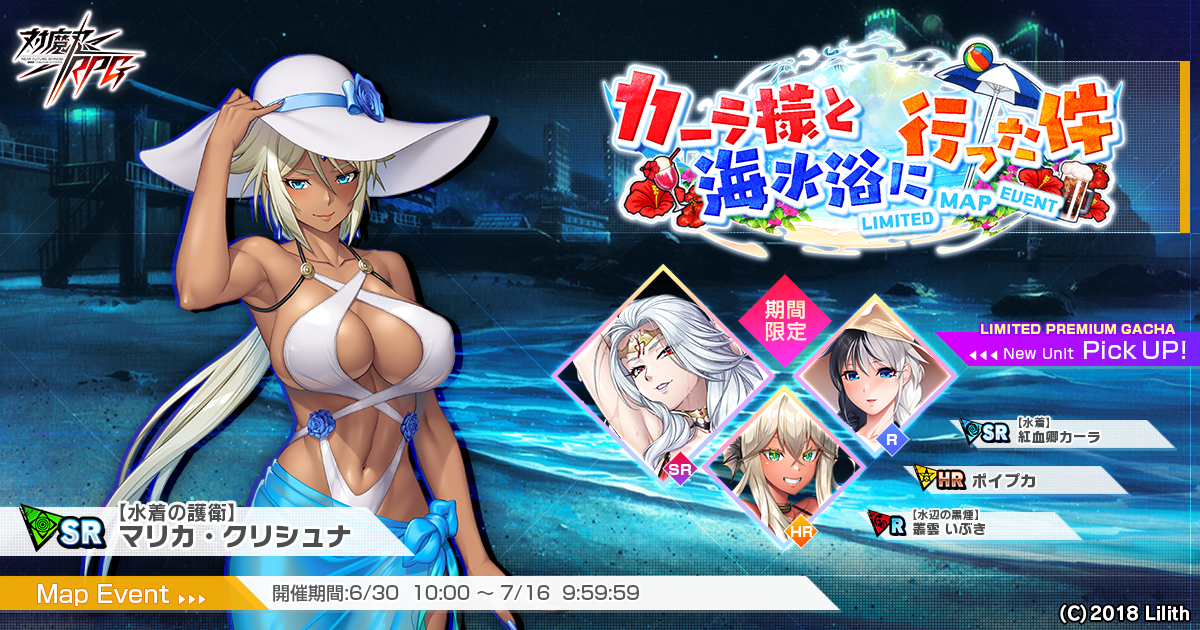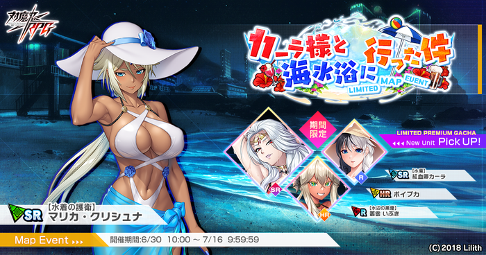 株式会社インフィニブレイン(本社:大阪市中央区、代表取締役:武山 英治)は、オンラインゲームプラットフォーム「DMM GAMES」( https://games.dmm.com/ )にて配信している、近未来くノ一ロールプレイングゲーム『対魔忍RPG』は6月30日(日)より限定ユニットを獲得できる期間限定マップイベント「カーラ様と海水浴に行った件」などをお知らせいたします。