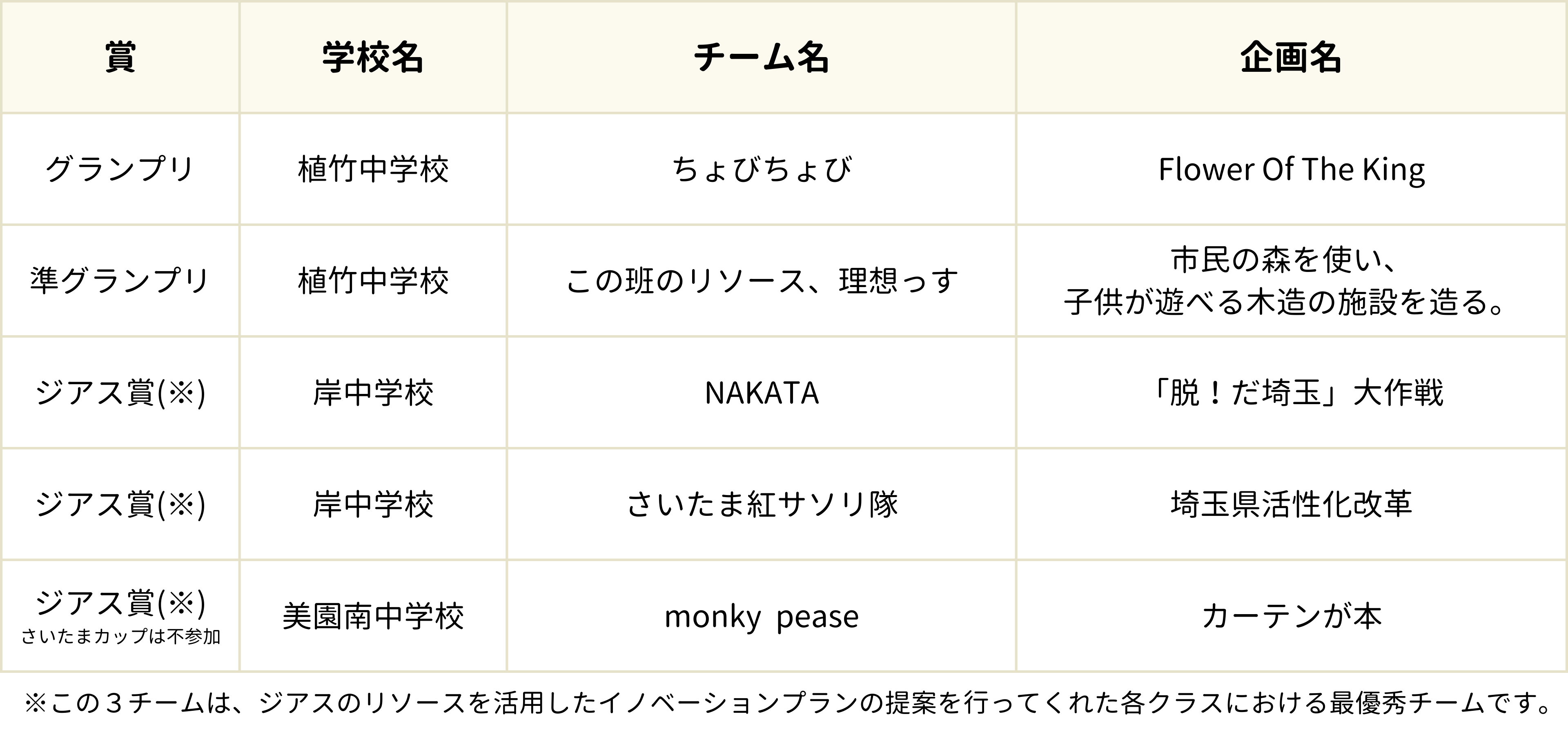 ※ジアスに向けて提案をしてくれた各中学校の最優秀チームについて