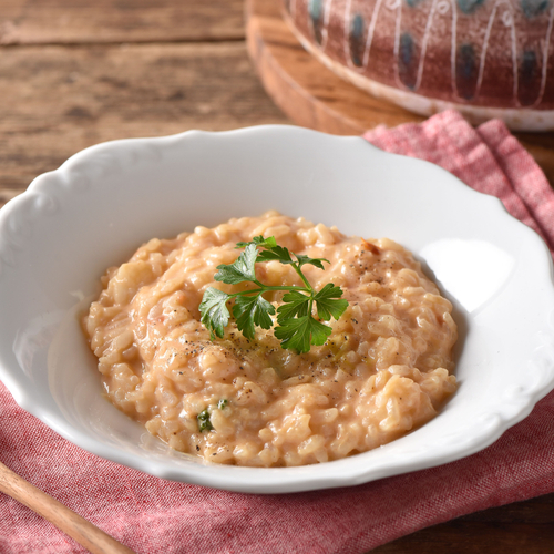 おすすめのアレンジ:魚介の旨味を感じるオマール海老ソースの鍋とリゾット風