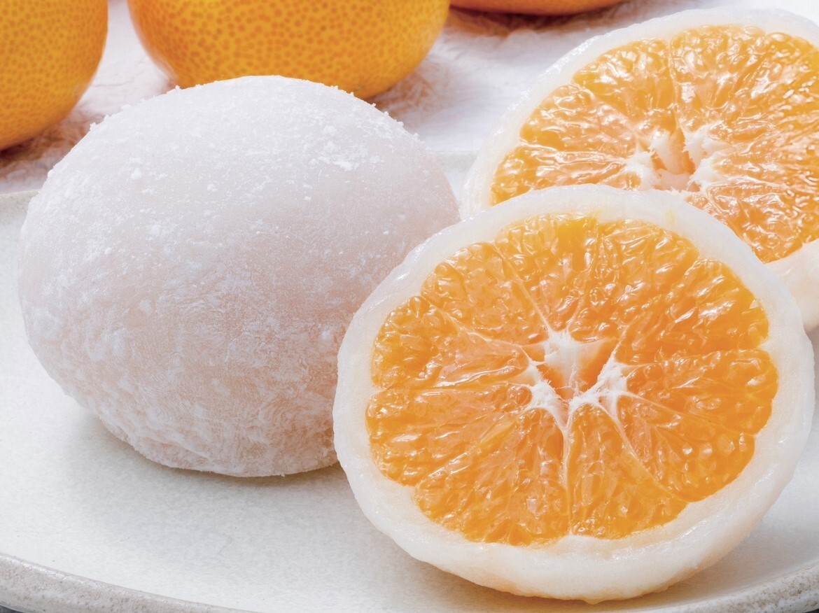 みずみずしい国産みかんをまるごと使って大福にしました。みかんの程よい酸味と白あんがよく合います。