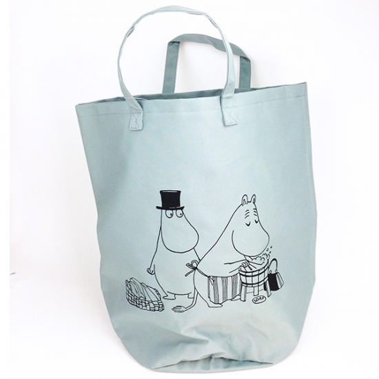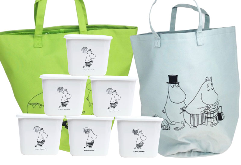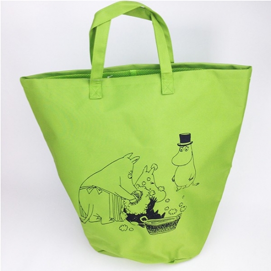 ぱっと目を引く鮮やかグリーンのランドリーボックスも。汚れてしまったムーミンがママに洗ってもらっているという、くすっと笑ってしまいそうなキュートなイラストが描かれています。
