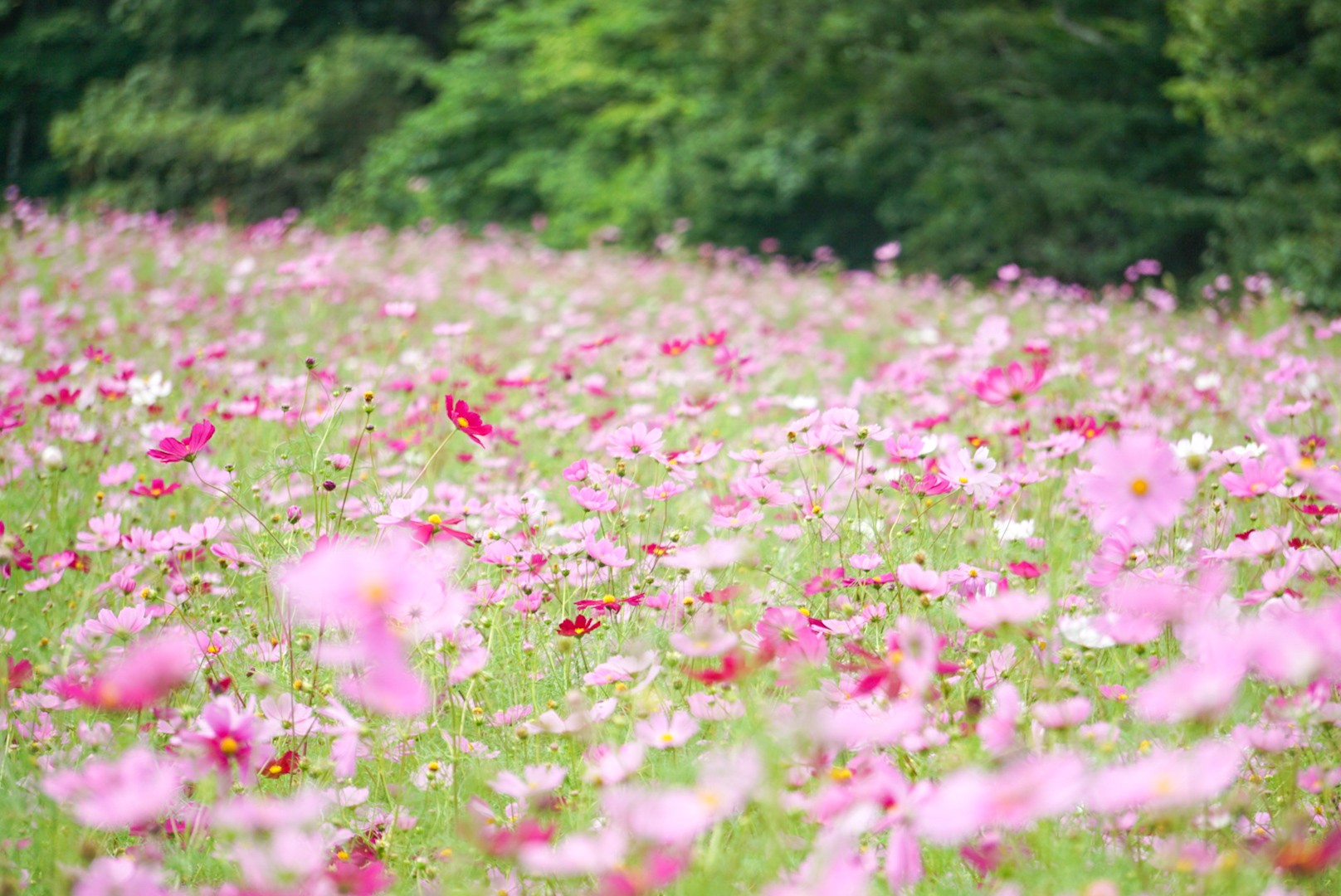 一面に咲くコスモスは「ひとめ100万本」と称されており、眼前に広がるピンク色の花畑は圧巻です。