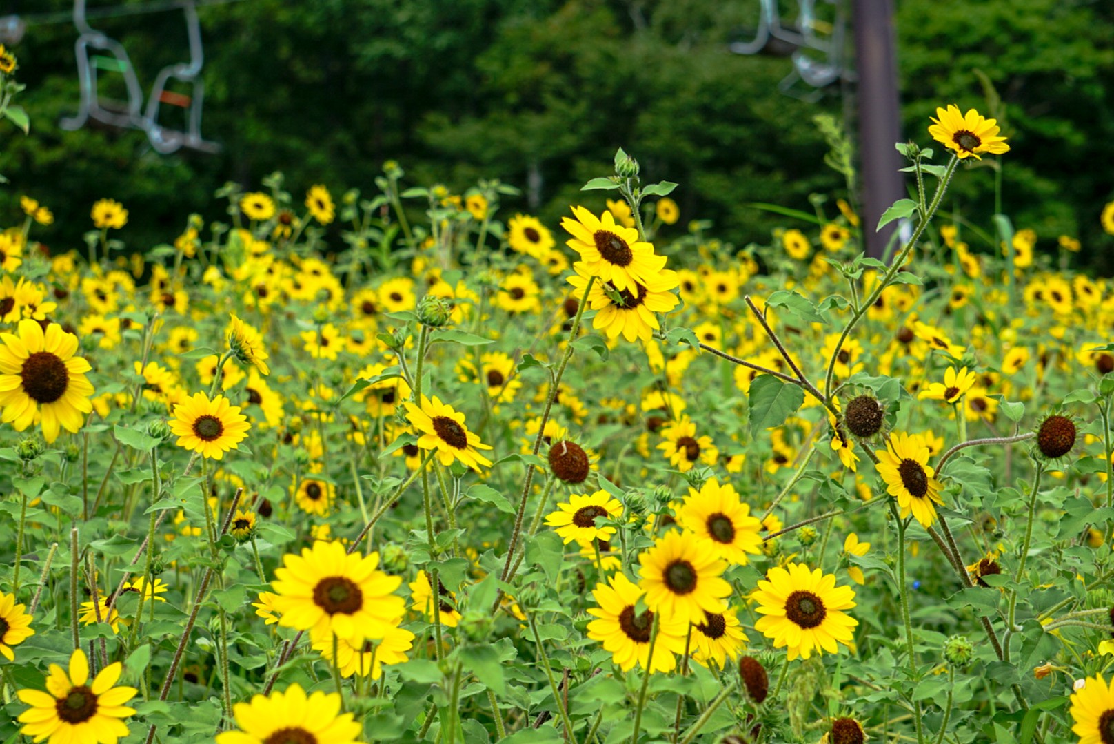 標高700mの高原に広がる3ヘクタールの花畑で、ひまわりとの共演も楽しめる
