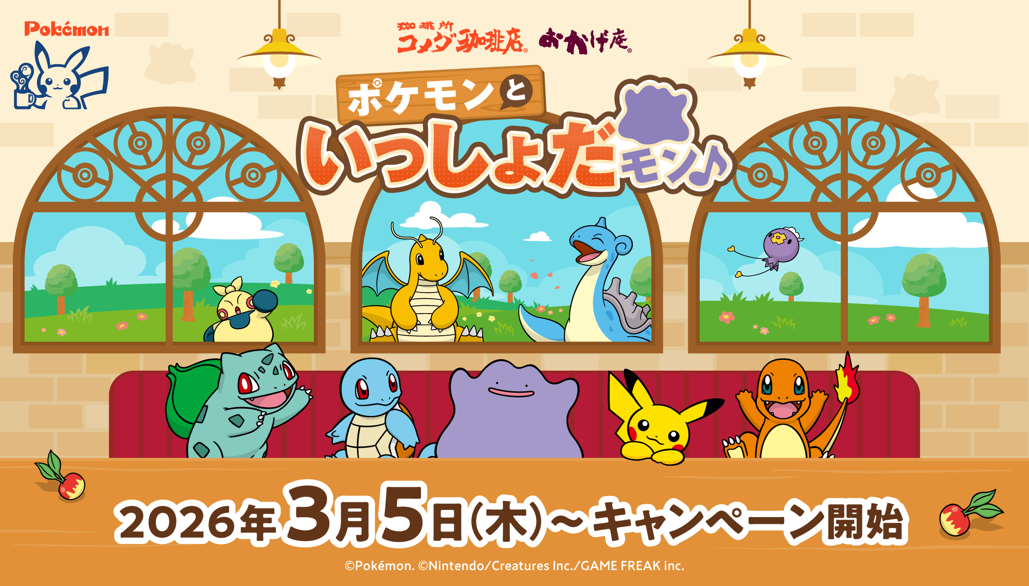 【コメダ珈琲店・おかげ庵】 \ポケモンと過ごすくつろぎ時間、再び!/ 「ポケモンといっしょだモン♪」キャンペーンを 2026年3月5日(木)より全国で開始!