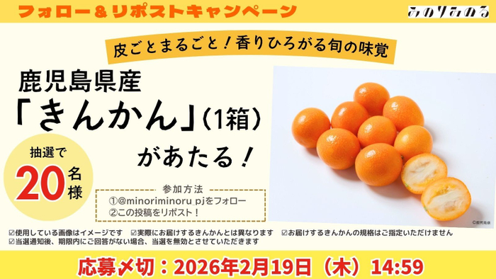 また、2月14日(土)から2月19日(木)の期間、「みのりみのる公式X」では「鹿児島県産きんかん(1箱)」が当たるプレゼントキャンペーンも実施します。