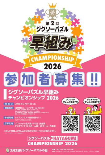 ジグソーパズルメーカー会主催 「ジグソーパズル早組みチャンピオンシップ 2026」参加者募集!