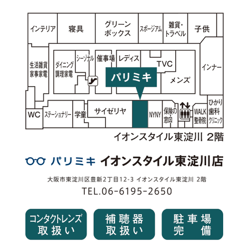 所在地:〒533-0014 大阪府大阪市東淀川区豊新2丁目12−3 イオンスタイル東淀川 2階
