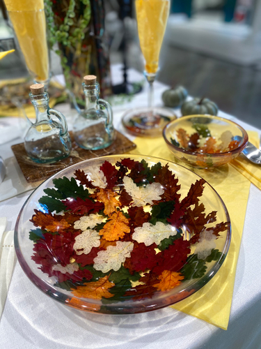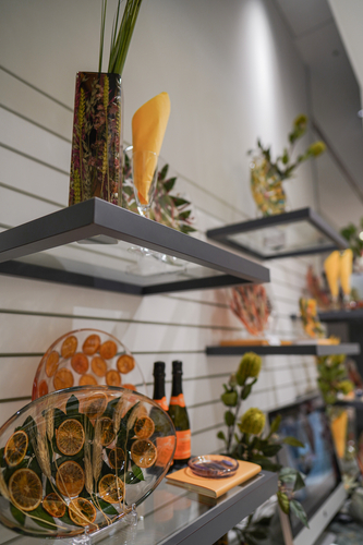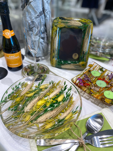 植物や果実をひとつひとつ丁寧に並べて透明な樹脂で固めたリカルドマルツィの食器類は、そのまま壁や棚に飾っても部屋を彩ってくれます。