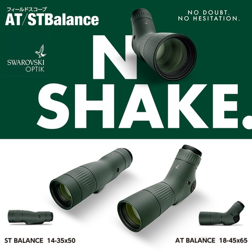 携帯性に優れた一体型フィールドスコープ「ATC/STC」のコンセプトを継承したコンパクトなボディに強力な防振機構を搭載。これまで三脚なしでは困難だった45倍(STは35倍)という高倍率での観察を手持ちで可能にするという、探鳥のスタイルを大きく変えるオンリーワンのスコープです。三脚使用時でも、風や操作による微細な揺れをシャットアウトし、極めてクリアな視界を提供。アングルタイプの「AT BALANCE」と、ストレートタイプの「ST BALANCE」の2タイプをラインナップしています。