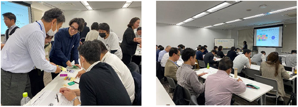 当日は、座学でSDGsについて学んだ後、少人数のチームに分かれ、2030年のわたしたちの世界がどうなっているのかシミュレーションをすることができるカードゲーム「2030 SDGsゲーム」を行い、なぜSDGsが必要なのかを考え、世界は繋がっていることを理解するきっかけとなりました。社会課題解決につながる取り組みを考えるグループワークを合わせて行うことで、今後の自社での取り組みを考えながら、従業員間のコミュニケーションの促進にも繋がりました。