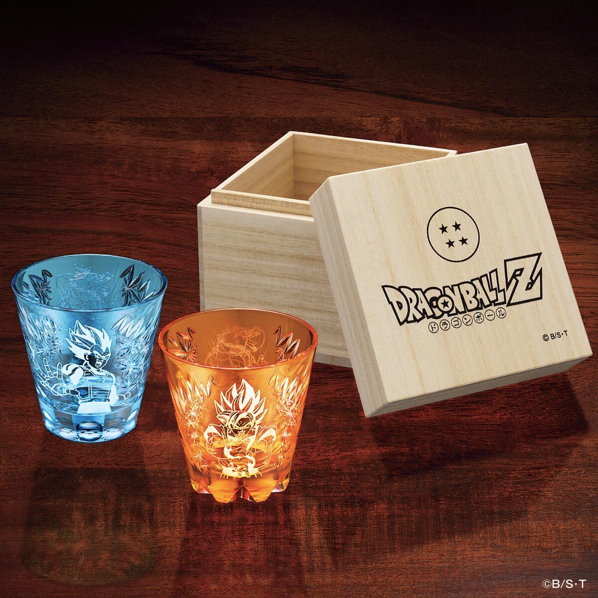 各グラスは、それぞれ『ドラゴンボールZ』のロゴと「四星球」を天面にあしらった特製桐箱に収めてお届けいたしますので、大切な方への贈り物にも最適です。
