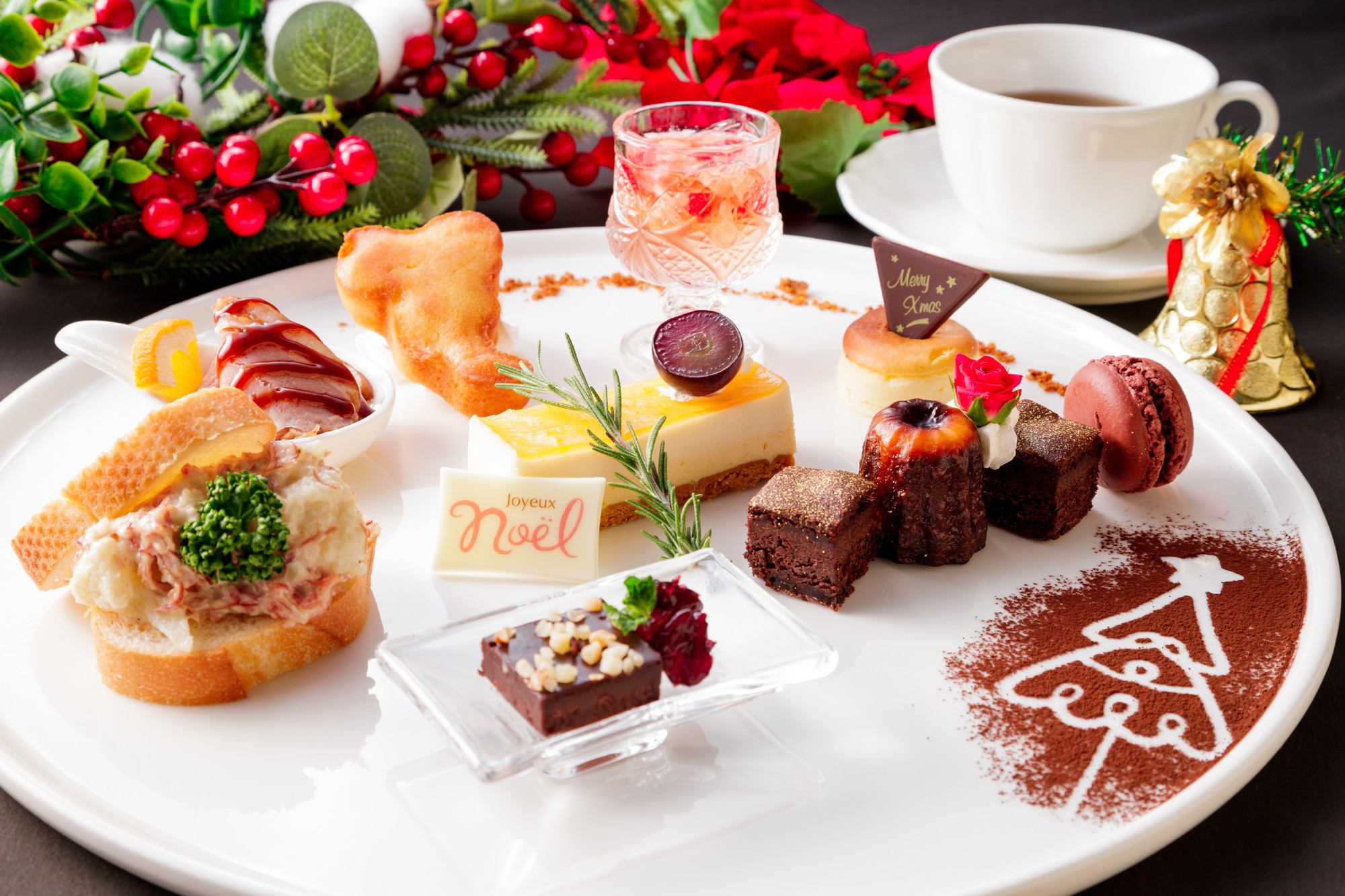 フェア期間中、ミシガンで人気のアフタヌーンティーセットをクリスマス仕様にアレンジ。チョコレートケーキやタルトに、クリスマスの飾りを添えてかわいらしく仕上げました!