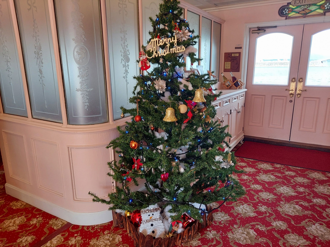 ①ミシガン船内をクリスマスの装飾で彩ります