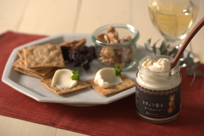 高級食材として知られる香り豊かなトリュフ塩を使用し、濃厚でコクのあるチーズベースのスプレッドとともに練り上げた、贅沢な大人のチーズパテです。