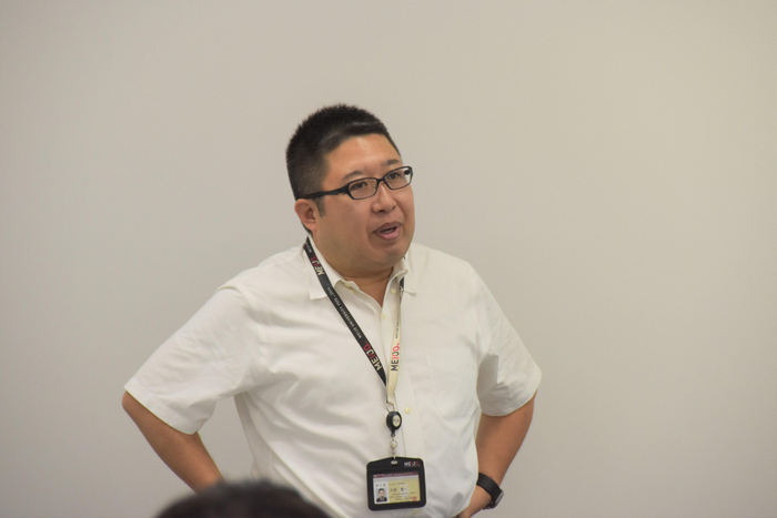 講義ではまず、大原教授がエンジニアを目指したきっかとして、レーザーディスク再生機能付きのミニコンポを購入した際、近所の方がその部品の一部を手掛けたことを知り、「自分も電気系のエンジニアになりたい」と思ったと紹介。しかし、入学した大学では希望した家電製品などに関する内容が少なく、モチベーションが下がったという。その後、コンピュータを搭載し、自律制御で未知の迷路を走破してゴールへ到達するまでの時間を競うマイクロマウスロボットを紹介され、大学で学びたいと思えるものに出会えたそうです。「偏差値や規模だけで大学を決めるのではなく、自分の興味ある内容が学べるかが大切」と経験を踏まえてアドバイスしました。