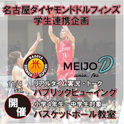 11月3日(金)、4日(土)に名城大学ナゴヤドーム前キャンパス(名古屋市東区)で開催される大学祭に、「名古屋オーシャンズ」と「名古屋ダイヤモンドドルフィンズ」がイベント参画します。